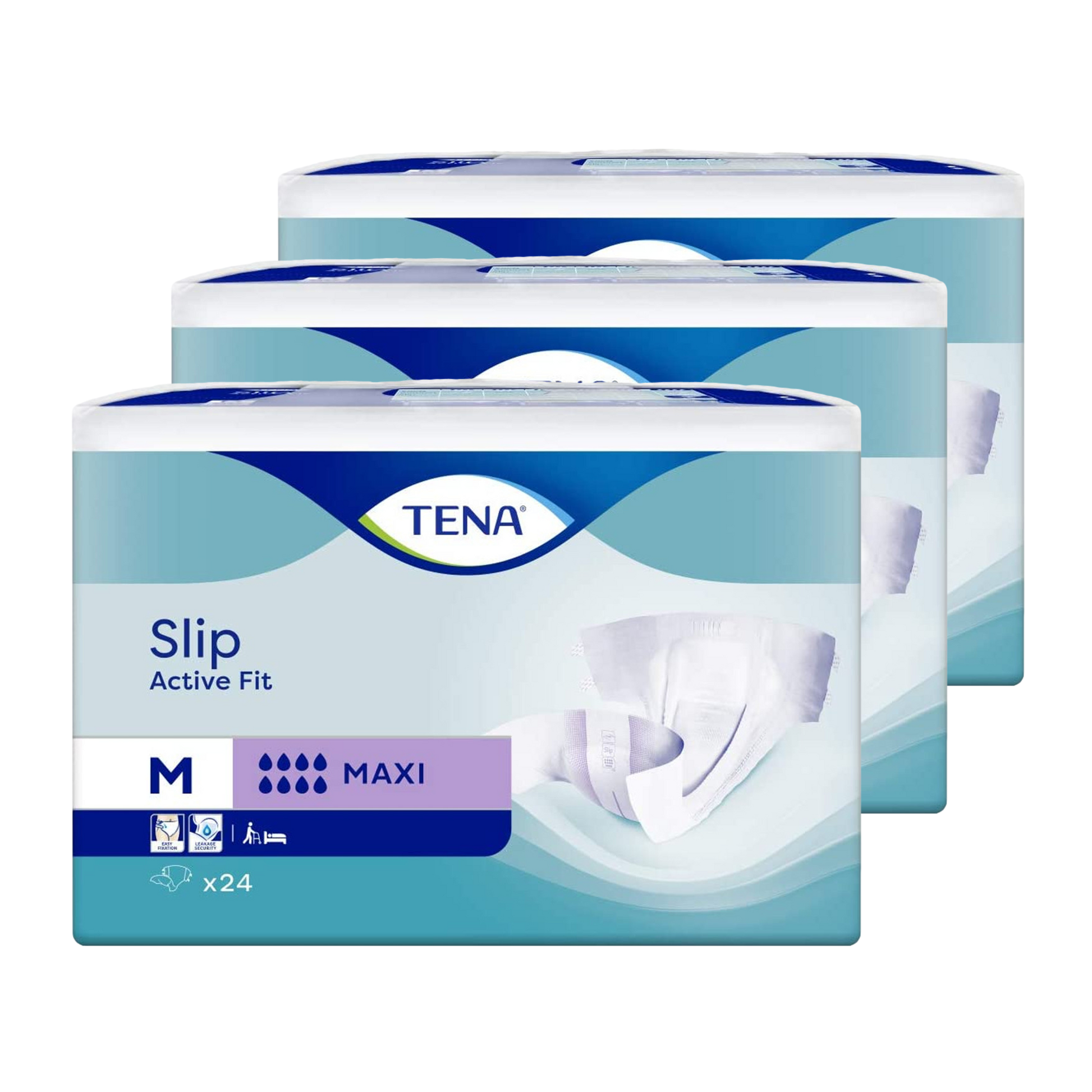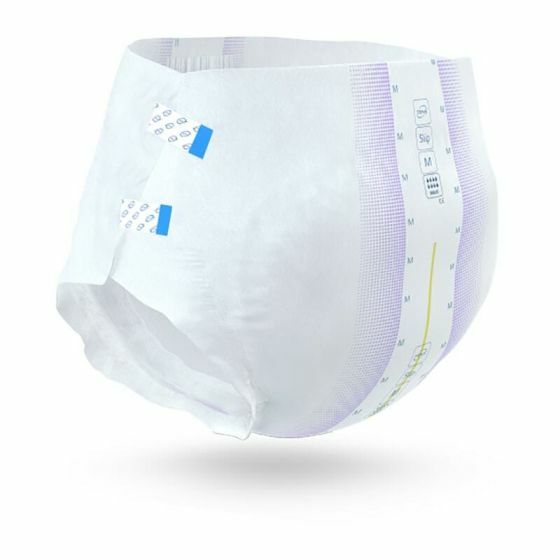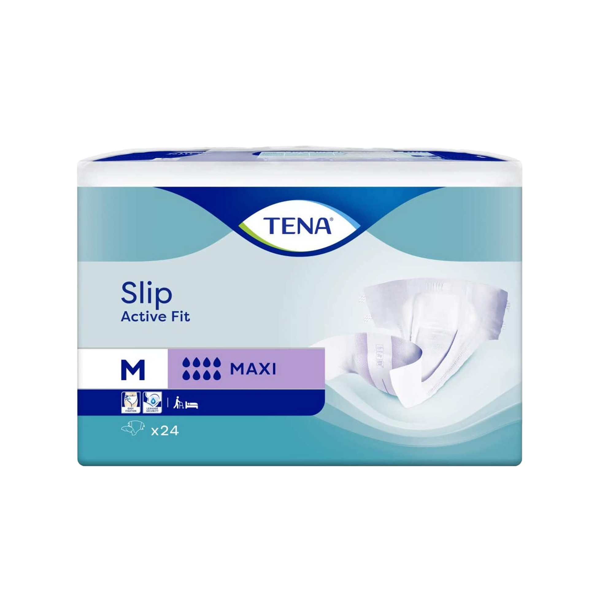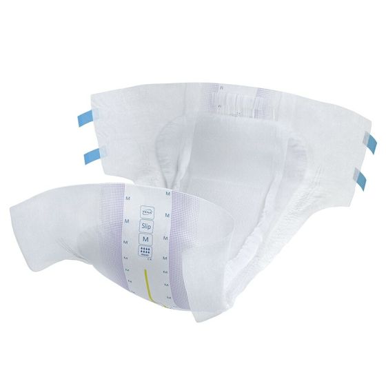 TENA Slip Active Fit Maxi is an open all-in-one incontinence product with adjustable tabs specially designed for individuals with an active lifestyle. This adult diaper has a strong durable backsheet and a fast-acting core with FeelDry™ technology that rapidly locks in urine for excellent leakage protection, even in larger quantities. Equipped with strong adhesive tabs, the EasyFix fastening enable easy changing when standing or lying down and can be re-fastened and adjusted for a good fit. The product features an Odor Neutralizer and a wetness indicator shows when it’s time to change.